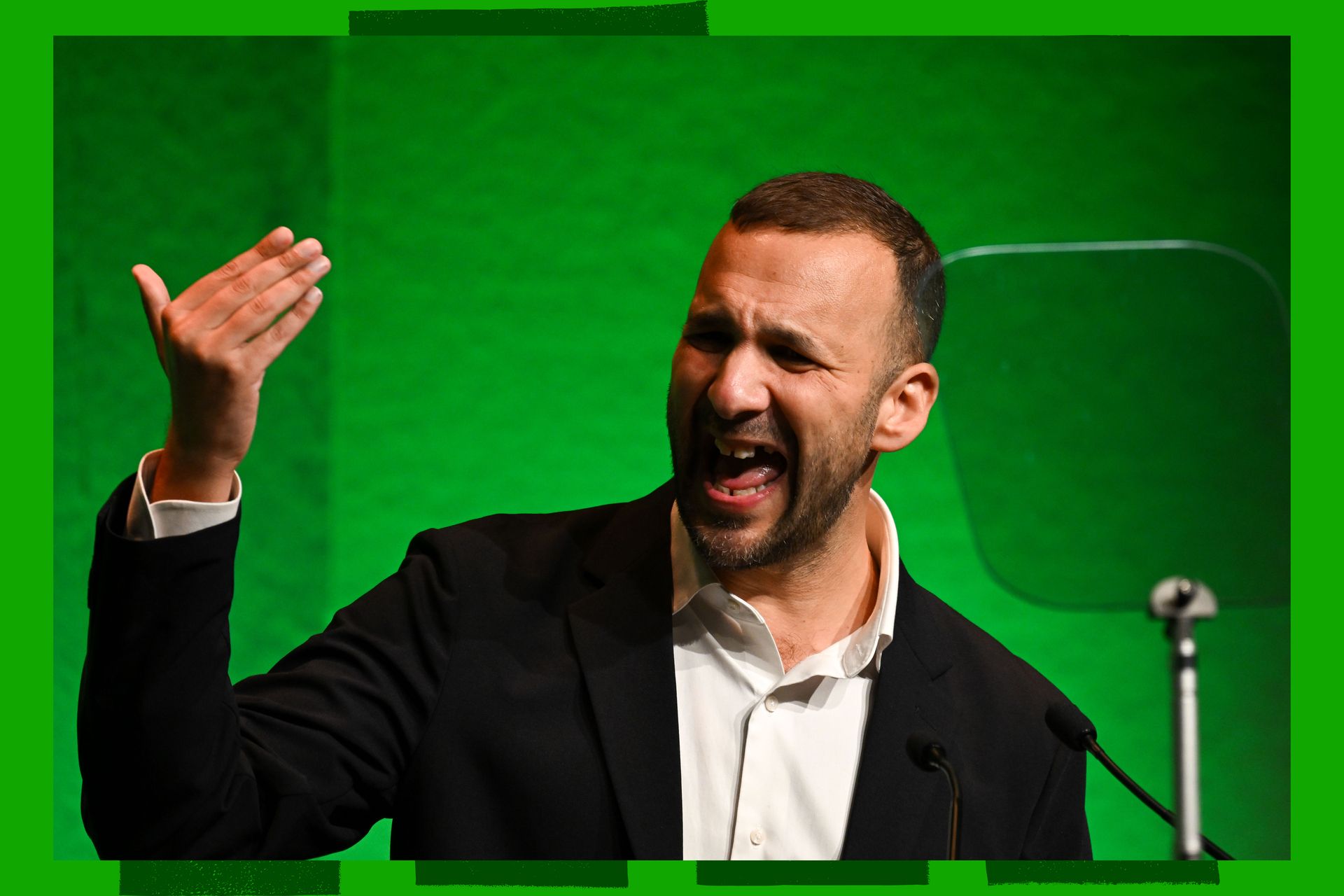 Zack Polanski, leader of the Green party, speaking in Bournemouth at party conference. Photograph: Finnbarr Webster / Getty images