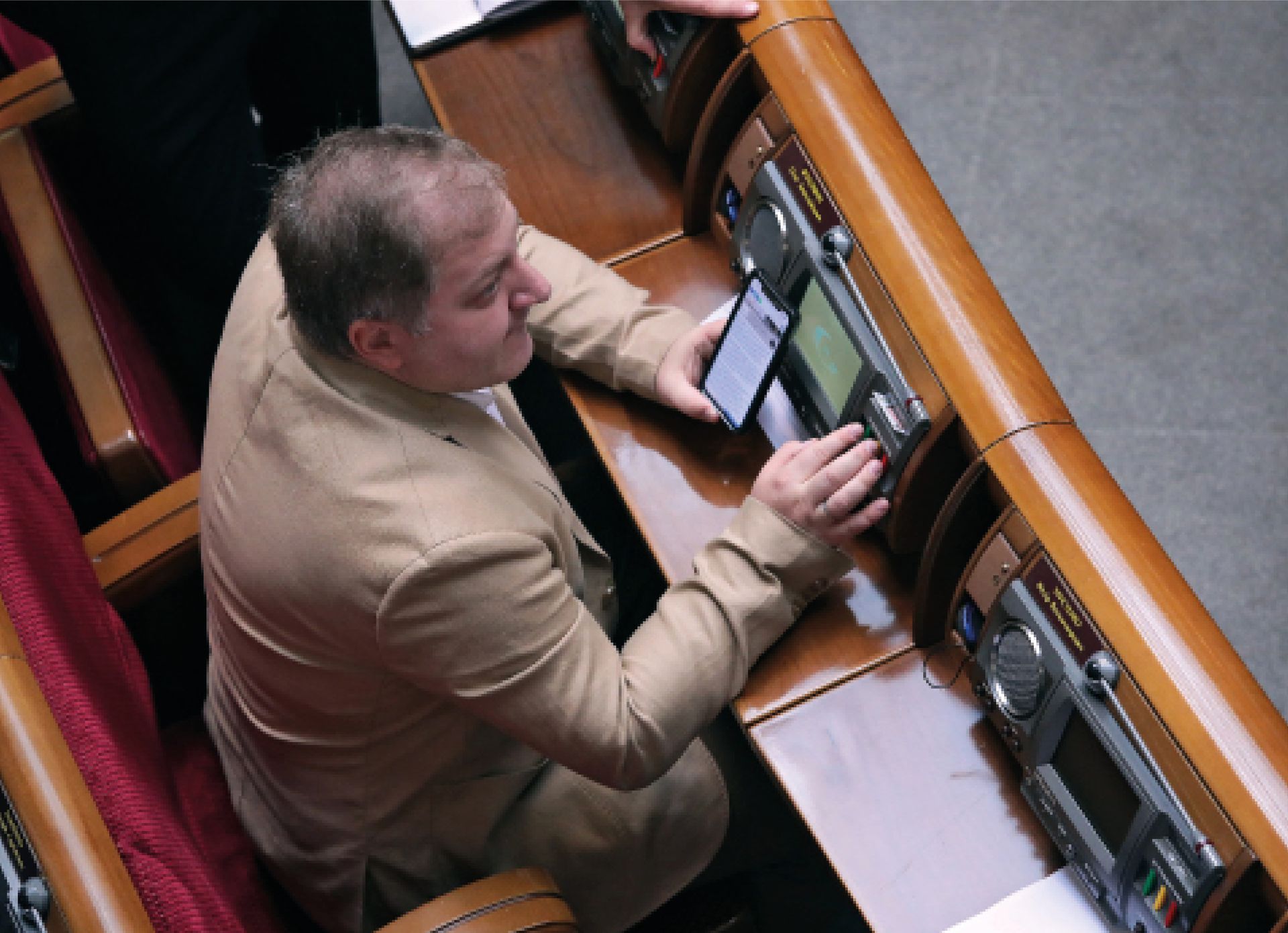 Ukrainian opposition MP Oleh Voloshyn casts his vote at a sitting of parliament in Kyiv, September 2020. Photograph: Hennadii Minchenko/ Ukrinform/Getty Images